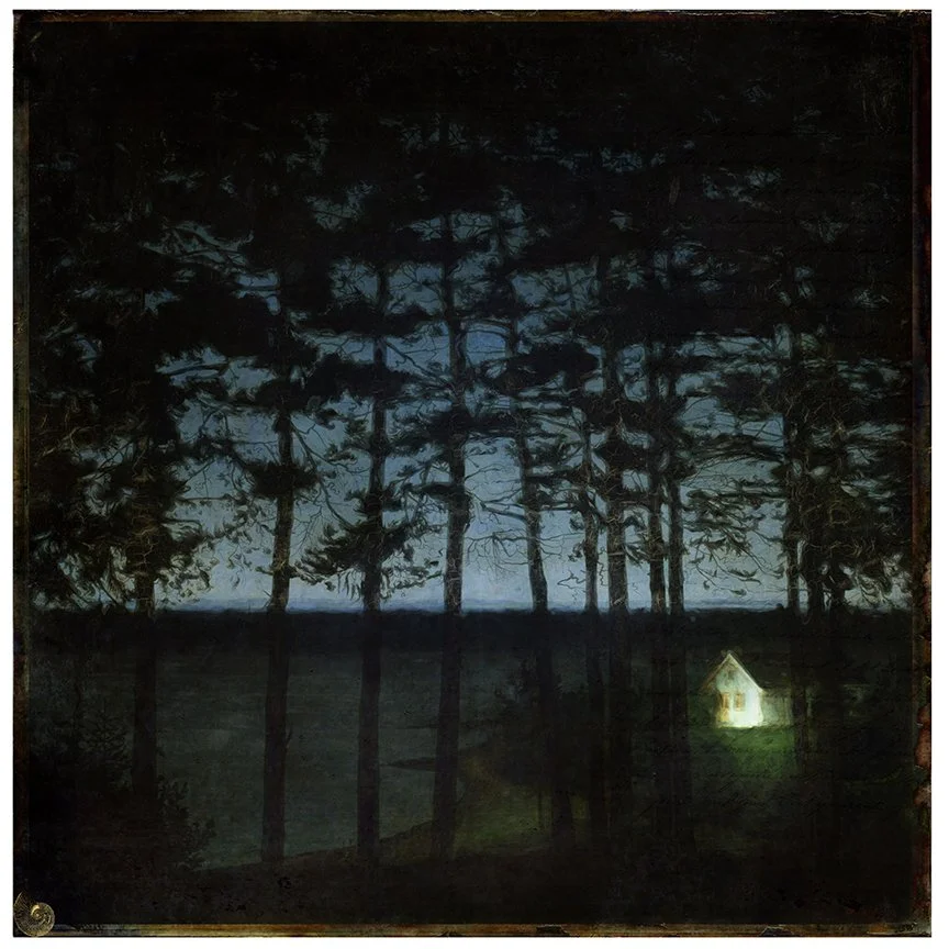 Harald Sohlberg, Fisherman’s Cottage, 1906; Art Institute of Chicago; CC0, Public Domain Designation; additional artwork and collage by Juliette Pierce Kent
